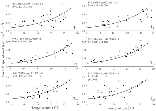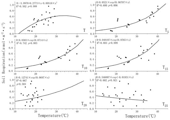 | Soil Temperature | Two-Factor Fitting Equation | R2 | p |