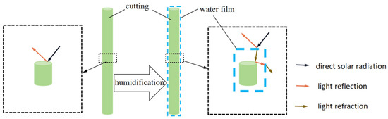 Schematic diagram of light transmission paths before and after humidification of the cuttings.