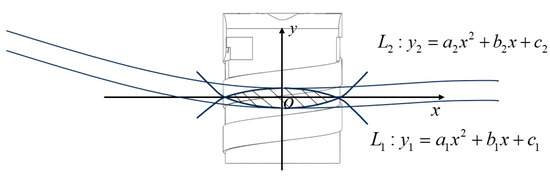 Let the intersection points of the two parabolas with the axis be and , where < . The contact area can be calculated based on integration as follows: