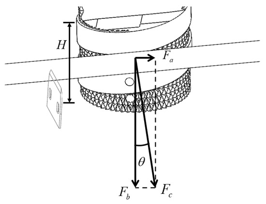 As a key component of the end-effector, the rubber fingers have their structural design and material selection affecting the gripping performance on the branch. To achieve adaptive positioning of the end-effector on the branch, it is necessary to ensure that the end-effector generates sufficient friction. Therefore, rubber materials that balance elasticity and friction are selected as the surface wrapping material for the fingers. Setting an appropriate distance between the two pairs of roller fingers ensures that the branches are not crushed while providing adequate gripping force. The axial distance between the two fingers is , the distance between the two fingers is , and the finger radius is , as shown in Figure 6.