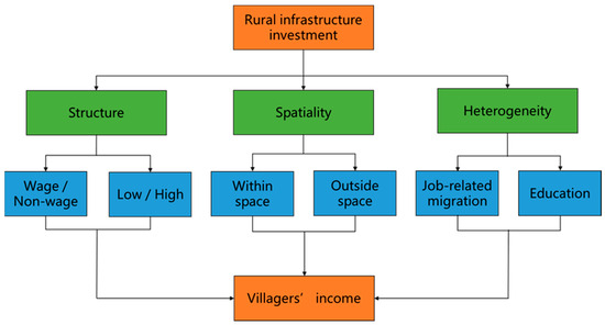 Based on the above theoretical analysis and deduction, this paper constructed a theoretical framework of the multidimensional impact of RII on villagers’ income (Figure 1).