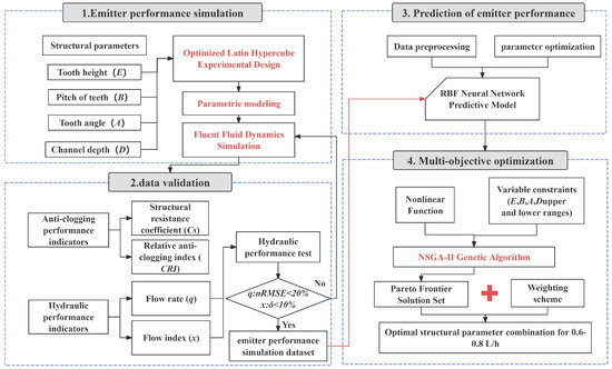 Yang, Z.; Mo, Y.; Zhao, C.; Liu, H.; Zhang, Y.; Xiao, J.; Gong, S.; Bi, Y. Multi-Objective Optimization Design of the Small Flow Rate Emitter Structure Based on the NSGA-II Genetic Algorithm. Agriculture 2024, 14, 2336. https://doi.org/10.3390/agriculture14122336