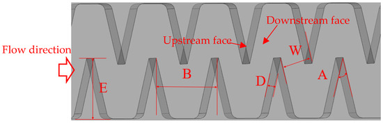 | Level of Factors | Tooth Height E (mm) | Pitch of Teeth B (mm) | Tooth Angle A (°) | Channel Depth D (mm) |