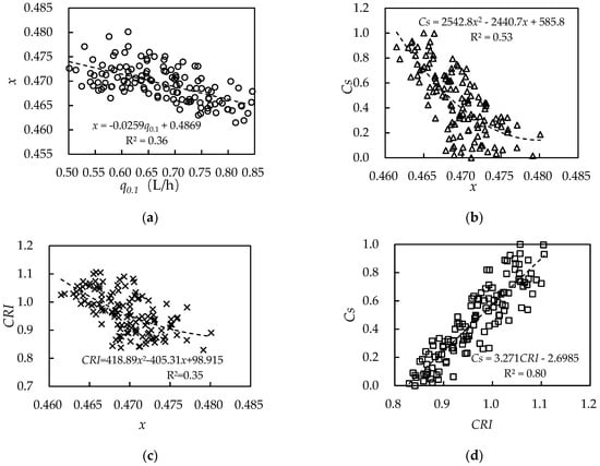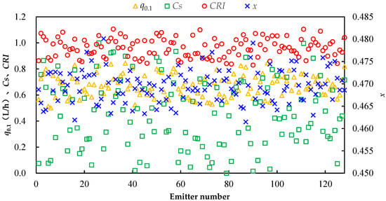 3.3. Relationships Between the Hydraulic Performance of Emitters and Anti-Clogging Performance Indicators