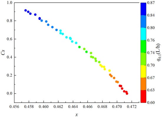 | q0.1 = 0.67–0.73 L/h | Max x | 101 | 0.73 | 0.473 | 0.417 |