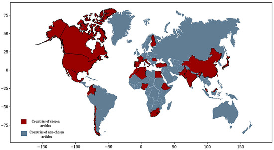 Spatial distribution of chosen publication on the topic of composting across the world.