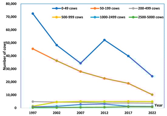 U.S. dairy operations (by size) trend. Source: USDA, Economic Research Services data, 2024 [4].