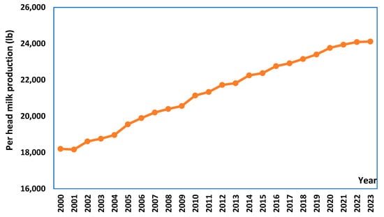 Per head milk production trend in the U.S. Source: USDA, Economic Research Services data, 2024 [4].