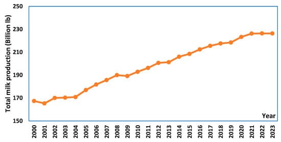 Total milk production trend in the U.S. Source: USDA, Economic Research Services data, 2024 [4].