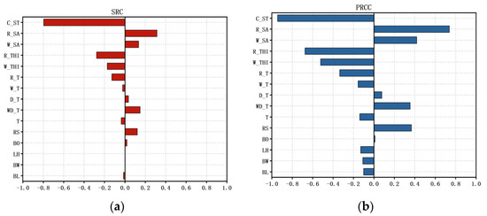 (a) Sensitivity ranking of SRC; (b) Sensitivity ranking of PRCC.