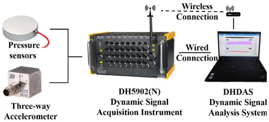 Both the three-way acceleration sensor and the pressure sensor use the DH5902(N) acquisition system of Jiangsu Taizhou Donghua Testing Company to realize dynamic measurement. The DHDAS acquisition and analysis system of Donghua Testing Company was used to set up different test channels. The parameter settings are shown in Table 4.