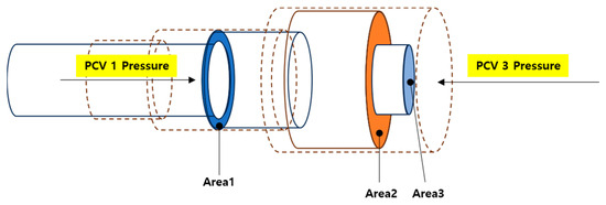 Equation (12) represents the equation when moving the sleeve to the left, and Equation (13) represents the equation when moving it to the right. Equation (14) represents the situation when the sleeve is in the neutral position.