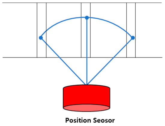 The position of the synchronizer is detected using a rotary position sensor, which is used to detect the position of a moving object, as shown in Figure 5. This position sensor, mounted on the hydraulic cylinder rod, detects position using voltage values that change according to the rotation angle [26]. The voltage value in response to the electrical signal changes with the movement angle, allowing the measurement of the synchronizer’s moving position. The speed of the synchronizer can also be determined based on the measured position through differentiation. Differentiating the measured position once gives the speed, and differentiating it twice yields the value of acceleration.