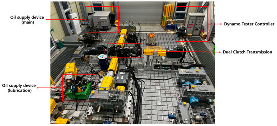 Test photos and layout diagrams for the dual-clutch transmission are shown in Figure 11 and Figure 12. In order to minimize external factors of the transmission, the test was conducted by mounting the transmission unit on a dynamo.