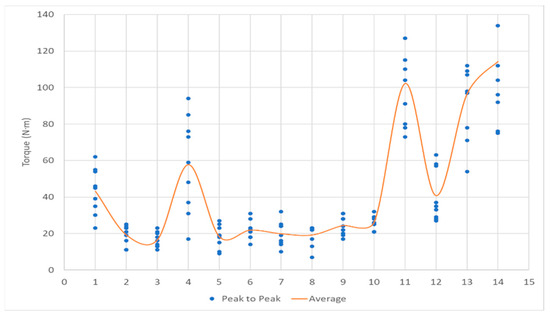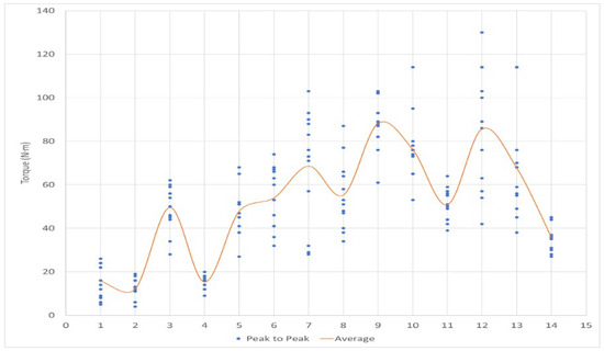 Additionally, the input shaft torque peak-to-peak according to shift stages within the same shift timing was analyzed as shown in Table 27 and Figure 23. The results confirmed that there are differences in the average input shaft torque peak-to-peak for each shift stage. This suggests that shift stages can be a factor affecting shift quality. Among them, Case 11 showed a higher torque fluctuation compared to other gears before and after.