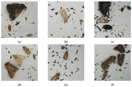 A selection of raw images from the IP102. (a) Sample (thrips); (b) Sample (Cicadellidae); (c) Sample (JinGui); (d) Sample (Miridae); (e) Sample (rice leaf roller); and (f) Sample (mole cricket).