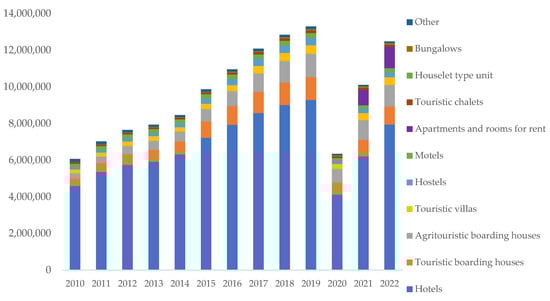 Dynamics of Romanian accommodation units between 2010 and 2022.