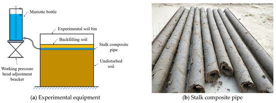 Our previous findings suggested that the hydraulic performance of SCPs was the best when stalks were added at 5~7% [41]. In this study, the SCPs were composed of 7%, 71%, and 22% of stalk, soil, and water, respectively. The flow rate of the SCP was 11.486 L/(h⸱m) under conditions of a 50 cm working pressure head. The irrigation time for each experimental treatment was 3 h and the irrigation water volume was about 34 L.
