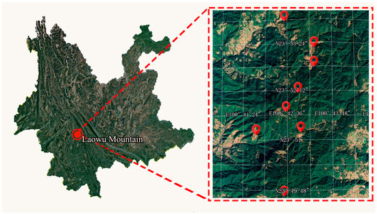 This study selected eight main cultivation areas of ancient tea trees in Shahe Village, Hetou Village, and Tangfang Village of Laowu Mountain, Zhenyuan County, Pu’er City (N 23° E 100°) as sampling points (Figure 1 presents the specific distribution of eight sampling points). Samples were taken of the selected ancient tea trees for the production of sun–dried green tea and soil. Before excavating the soil of the roots of ancient tea trees, the surface litter and a 4–5 cm layer of soil were removed. The five–point sampling method was used to collect samples from the soil within a vertical depth range of 20 cm and 40 cm. Samples were collected in triplicate at each sampling point, with each sample weighing no less than 200 g. Uniform depth and weight were ensured at each sampling point. A total of 180 samples of ancient tree rhizosphere soil and 90 samples of ancient tree sun–dried green tea were collected for this study. Each sample was numbered and sampling records and sample labels were filled out for each sample.