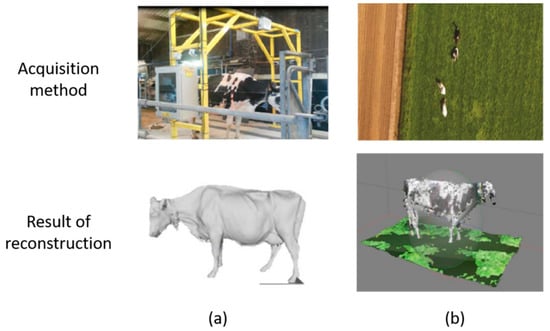 - Le Cozler, Y.; Allain, C.; Caillot, A.; Delouard, J.M.; Delattre, L.; Luginbuhl, T.; Faverdin, P. High-precision scanning system for complete 3D cow body shape imaging and analysis of morphological traits. Comput. Electron. Agric. 2019, 157, 447–453. [Google Scholar] [CrossRef]
