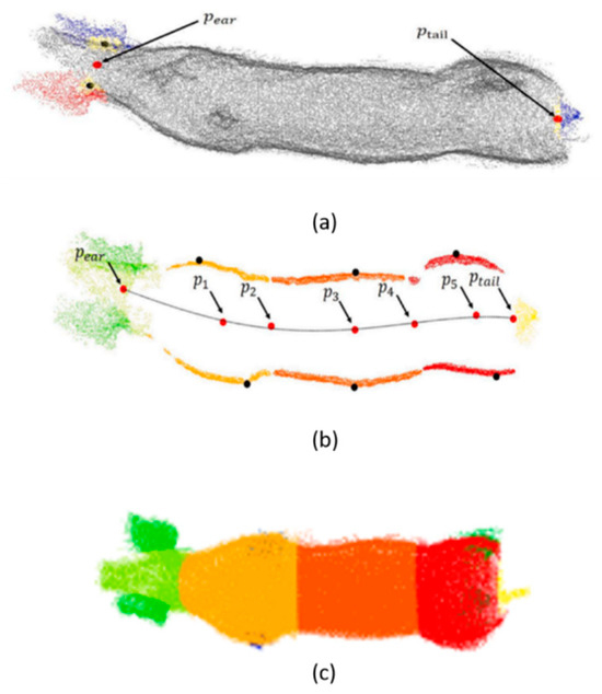 - Guo, H.; Li, Z.B.; Ma, Q.; Zhu, D.H.; Su, W.; Wang, K.; Marinello, F. A bilateral symmetry based pose normalization framework applied to livestock body measurement in point clouds. Comput. Electron. Agric. 2019, 160, 59–70. [Google Scholar] [CrossRef]