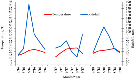 Figure 1. Climate diagram according to Walter and Lieth [18] for the period 2016–2018.
