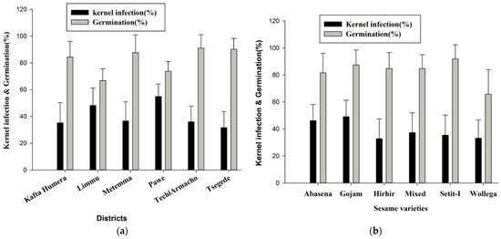 - Nayyar, B.G.; Akram, A.; Akhund, S.; Rafiq, M. Seed viability test and pathogenecity assessment of most prevalent fungi infecting Sesamum indicum L. IOSR J. Pharm. Biol. Sci. (IOSR-JPBS) 2014, 9, 21–23. [Google Scholar] [CrossRef]