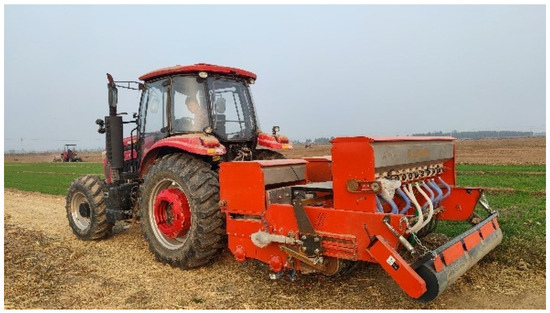 - He, X.; Zhang, J.; Zhang, R.; Zhu, Y.; Wang, W.; Zhang, H. Development of the seed-ditch compaction device for wide-boundary sowing wheat. Trans. Chin. Soc. Agric. Eng. 2023, 39, 18–29. [Google Scholar] [CrossRef]