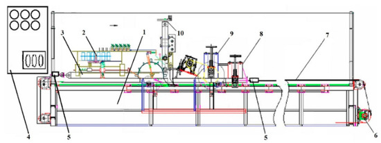 Soil bin test rig: (1) soil channel frame; (2) planting machine; (3) trolley; (4) control panel; (5) sensors for measuring the pulling force; (6) electric motor for driving the trolley; (7) pulling cable; (8) vertical loading mechanism on the roller; (9) vertical loading mechanism on the wheel; (10) mechanism for vertical adjustment of the machine’s clamping support.