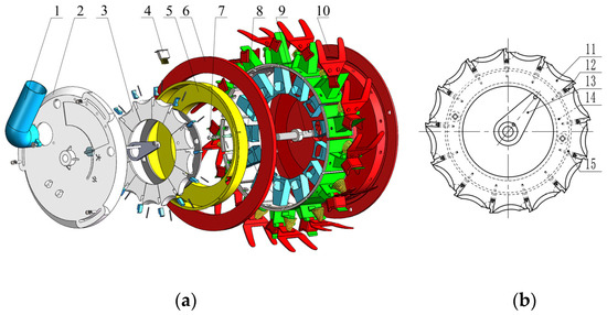 - Jia, H.; Chen, Y.; Zhao, J.; Wang, J.; Guo, M.; Zhuang, J. Design and Experiment of Pneumatic-mechanical Combined Precision Metering Device for Soybean. Trans. Chin. Soc. Agric. Mach. 2018, 49, 75–86. [Google Scholar]