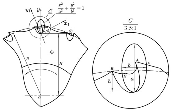 3.2.2. Determination of the Geometric Parameters of the Combined-Type Holes