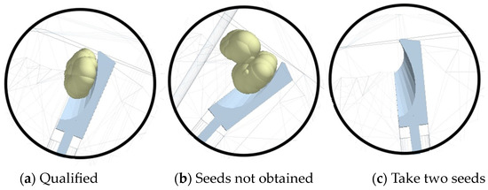 - This study clarified the adjustment range of the hole and its influencing factors and revealed the force state of the seed in the process of seed guiding, filling, and carrying by analyzing the mechanics of the seed-taking process of the seed-taking disc.