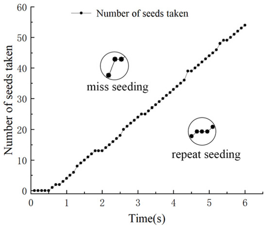 - With the help of the simulation platform for the seed extraction process, we found that the seeds near the edge of the seed tray in the rising zone had the most similar speed to the seed tray, which is an important factor for successful seed extraction. The main cause of leakage was the “hitching arch” of the seed, and a targeted solution to break the arch by oscillating the seed pick-up slider was proposed.