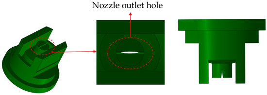 In crop production, pesticide spraying remains one of the common methods for preventing and controlling diseases, pests, and weeds. The nozzle is a crucial component during the pesticide application process. Its function is to atomize the pesticide into droplets and then, under the influence of external forces, deliver the liquid to the target crops. The size distribution and velocity distribution of the droplets directly impact the movement of droplets during transport, influencing the drift and deposition rate, thereby further affecting the utilization efficiency of pesticides and the effectiveness of pest control. Small droplets exhibit favorable deposition and coverage effects but are susceptible to evaporation and drift, which can affect their application efficacy. Oversized droplets can result in the loss of liquid on crop leaves to the soil, causing soil pollution and reducing pesticide utilization efficiency. Droplet velocity also affects pesticide utilization. Droplets with extremely low velocities cannot reach the target, while those with excessively high velocities are prone to bouncing back [1,2,3,4].