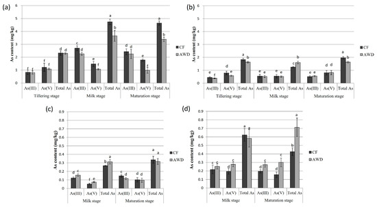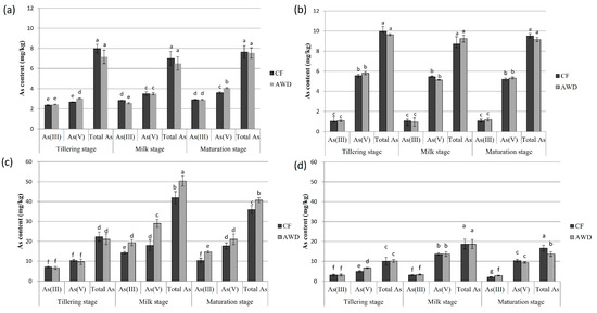 - Carrijo, D.R.; LaHue, G.T.; Parikh, S.J.; Chaney, R.L.; Linquist, B.A. Mitigating the accumulation of arsenic and cadmium in rice grain: A quantitative review of the role of water management. Sci. Total Environ. 2022, 839, 156245. [Google Scholar] [CrossRef]