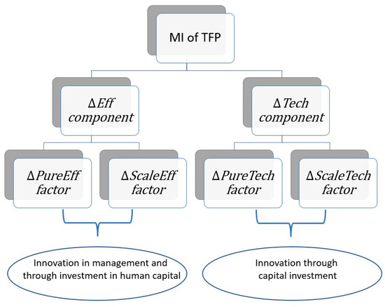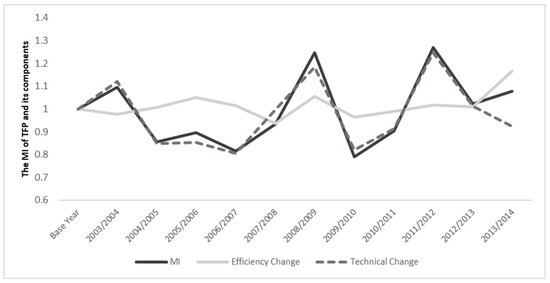 - O’Donnell, C.J. Using information about technologies, markets and firm behaviour to decompose a proper productivity index. J. Econom. 2016, 190, 328–340. [Google Scholar] [CrossRef]