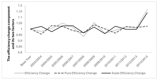 | Efficiency Change Component | Pure Efficiency Change | Scale Efficiency Change | ||||