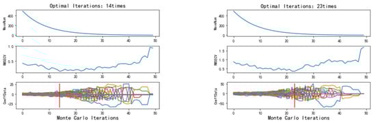 In this experiment, three optimization algorithms, namely GA, SSA, and an improved algorithm called ZSYSSA, were used to optimize the parameters ‘C’ and ‘g’ of the SVR model. The optimization process employed the RMSE as the fitness function, with an initial population of 50 and a maximum of 100 iterations. The parameter bounds were set as [0.001, 100]. We repeated the experiment to take the mean value for analysis.