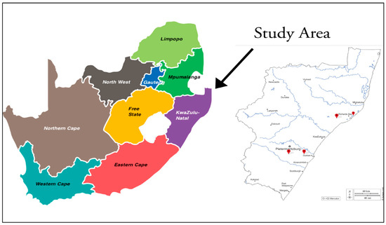 - Kwazulu-Natal Municipalities. Municipal Directories and Reports; Government of South Africa. 2023. Available online: https://www.gov.za/about-government/contact-directory (accessed on 30 November 2023).