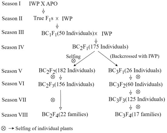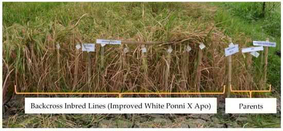 - Hasan, M.M.; Rafii, M.Y.; Ismail, M.R.; Mahmood, M.; Rahim, H.A.; Alam, M.A.; Ashkani, S.; Malek, M.A.; Latif, M.A. Marker-Assisted Backcrossing: A Useful Method for Rice Improvement. Biotechnol. Biotechnol. Equip. 2015, 29, 237–254. [Google Scholar] [CrossRef] [PubMed]