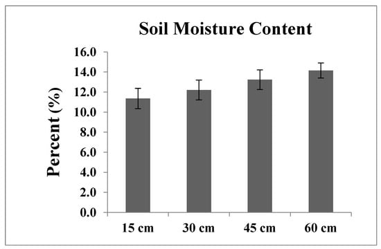 Final soil moisture content during drought stress taken at six different areas in the rain-out shelter.