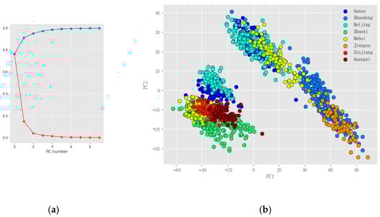 - The combination of preprocessing and PCA cannot achieve high-precision identification analysis of maize seeds from different origins. However, the GAF-VGG network can perform feature extraction under complex conditions with both high and stable prediction accuracy. This network is capable of identifying maize seeds that do not possess the characteristics of their respective origins, providing a new perspective for origin identification and traceability analysis in maize seeds. The results achieved using the GAF-VGG network model outperformed those of Schütz et al. [32], who accurately predicted the origin of maize seeds with 95% accuracy using Fourier Transform NIR spectroscopy and SVM methods, thus emphasizing the advantages of integrating GAF with VGG network for identifying maize seed origins.