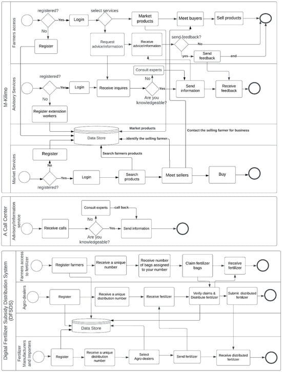 Food insecurity and extreme poverty are among the major challenges of low- and mid-income countries, including Sub-Saharan Africa. The major threat to food insecurity on the continent include climate change and projected population growth, with Sub-Saharan Africa leading the way with a growth rate of 114% in 2050 [1]. Moreover, the global political crisis, such as the war between Russia and Ukraine, has led to food shortages, particularly in African countries [2]. The digitization of agriculture services is essential to enable farmers to adopt climate-resilient practices for the development of the agrifood system [3]. Governments, particularly in low- and mid-income countries, can play a major role in supporting the agriculture sector, which makes a significant contribution to countries’ GDP and provides employment for more than half of the population [4]. According to the Organization for Economic Co-operation and Development (OECD) [5], Information and Communication Technologies (ICTs) can help governments to improve services to citizens in a cost-effective, transparent, accountable, and highly convenient way through e-Governments.