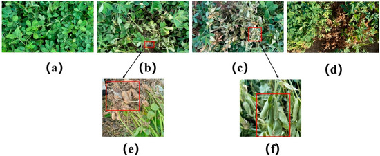 Peanut southern blight caused by Agroathelia rolfsii has caused huge economic losses in peanut production worldwide [1]. Southern blight, a serious soil-borne fungal disease, develops rapidly under hot and humid conditions. In the early stages of infection, the plant leaves are yellowed, and rough white mycelium clings to the lower stems. As the disease intensifies, the mycelium further radiates to the soil surface, the signs of leaf yellowing intensify, and the infected stems and leaves turn a dark brown color, and ultimately the entire plant dies [2]. There are no peanut varieties with high resistance to southern blight, and the control of southern blight is still based on chemical agents [3]. Therefore, timely and effective monitoring of southern blight incidence is important for peanut control.