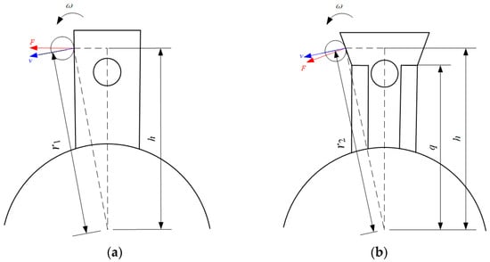 The contrast between Formulas (3) and (4) reveals that the contact distance of our new hammer was longer than that of the traditional hammer when each hammerhead came into contact with materials at the same contact height of h. Hence, according to Formula (2), compared with the traditional hammer, blade hammer put more stress on the materials so that they could be ground more easily.