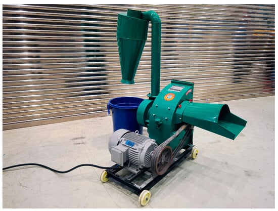 As a novel energy plant, Jun-Cao can survive easily with low requirements on growing conditions []. The ground Jun-Cao can serve as a base for edible mushrooms. With a shorter growth cycle and higher yield than trees, the reasonable use of Jun-Cao for growing edible mushrooms can save vast amounts of timber and solve the “contradiction between mushroom and forest” [,] caused by mushroom cultivation. As a base for edible mushrooms, when Jun-Cao fails to be grounded evenly, it will directly affect the growth conditions of fungi. However, high energy consumption and low grinding efficiency of mill have become the key factors hindering the promotion and development of the Jun-Cao industry.