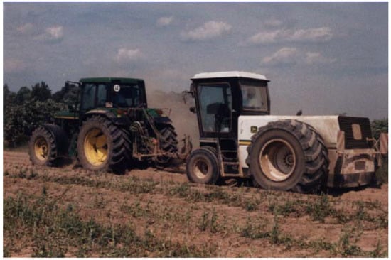Modeling terrain–machinery interaction and terrain–vehicle interactions in real-time applications has become one of the main challenges of terramechanics in the last three decades. Related research has focused on two main topics: real-time dynamic simulation and real-time controller design. These algorithms enable the advanced control of off-road vehicles, such as through the online traction control of intelligent tractors [1]. Due to increasing energy prices and tightening emission standards, increasing the efficiency of agricultural vehicles has become crucial [2]. The higher level of automation reduces operational costs and energy consumption and increases overall productivity and safety [3].