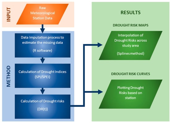 On the other hand, it must be also underlined that the proposed methodology has its limitations, mostly due to data availability and the accuracy of the fictitious values that are extrapolated between stations. The SPI/SPEI timescales utilized (3-, 6-, and 12-month) while assessing the drought risks can be optimized in future studies to focus on a specific aim, supported by the in-situ measurement or records of historical droughts, such as detecting short-term extreme droughts, which may be unobservable due to the accumulation of indicator values when using longer timescales. The same methodology can be applied over longer timescales for detecting longer, more persistent droughts with lower magnitudes. Moreover, the characteristics of the drought curves, such as the slope or angle of the initial section of the curve, etc., can be classified into post-defined sub-categories such as wet and dry states.