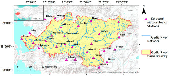 The basin has over sixty meteorological stations in and around its boundaries; however, some of the stations lack reliable data as some others are too close to each other, causing repeated information (Figure 2). Data availability, a common challenge globally, is one of the primary driving factors in choosing the best stations to represent the study area in time and space dimensions. Out of 68 meteorological stations considered around GRB, 27 were selected according to their data availability and spatial location, aiming at homogeneity in data representation. The basin substantially changed in the 1990s due to anthropogenic activities and climate change-related pressures. Thus, the declining water resources and increasing urban and industrial demands raise concerns regarding water quality and quantity. Determining and projecting potential future droughts is a valuable tool in decision-making and planning for the basin [].