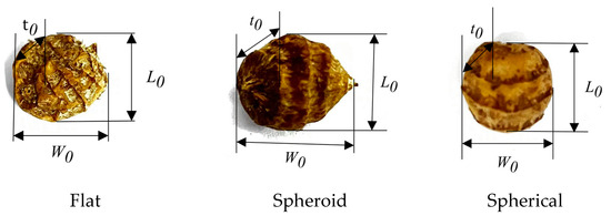 Schematic diagram of tiger nut seed’s triaxial size. In the figure, is the length of tiger nut seeds; is the width of tiger nut seeds; and is the tiger nut seed thickness.